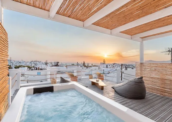 거리의 전망이 있는 Cosmo Luxe 아파트 아파트는 Psarou Beach에서 가까운 거리에 있습니다. 이 아파트에는 3개의 침실과 3개의 욕실이 있습니다.